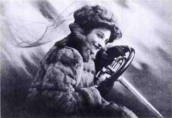 Selwyn Edge, Director of the Napier Car Company and famous racing driver… spotted Miss Dorothy Levitt amongst his staff, a beautiful secretary with long legs and eyes like pools. In a bid to promote his cars… Edge decided that she should take part in a race, though first he had to teach her to drive. She surpassed his expectations… and proved such a good driver that she was taken on by De Dion for a major publicity stunt. At the Hereford Thousand Miles Trial in 1904, Dorothy posed before members of the press, delighted by her uncommonly glamorous racing outfit, holding a snappy Pomeranian dog that barked ferociously at all the other competitors…
