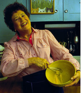In the process, Julia discovered that the failure of Americans to be able to successfully reproduce French dishes was not due to their incompetence, but to differences in ingredients that had never before been revealed. Like a true scientist, Julia discovered there was a gluten difference of 2.5 percent between French and US flours. This difference had been hampering American bakers in their attempts to produce a quality loaf of French bread. And this was certainly not the only difference that had become a cooking problem which had “delayed completion [of a dish]… from the oversized turkeys that had be cooked differently from the French poultry to the difficulty of finding creme fraiche… American veal was not as pale and tender as the French; U.S. butchers offered different meat cuts; except for parsley, few fresh herbs were available; American ate a lot of broccoli, which was rare in France — and so the discoveries went.” (Fitch, p. 240)
