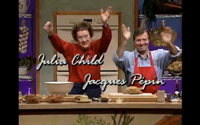 Long before Martha became the measure of the success of our holiday cooking and interior decorating, Julia invaded the home through the medium of television. Home is largely about nostalgia rather than reality… and is most certainly based in memory. The visual mediums of television and film can thereby serve as ways to recover “‘lost, unheard memories’… of that past. So identity, it seems is a question of memory, and memories of ‘home’ in particular.” (David Morley & Kevin Robins, “No Place like Heimat: Images of Home(land) in European Culture,” in Eley & Suny, p. 461) For many viewers, Julia excavated an American historical cuisine (germinating from the French) dug out of (or into) the metaphorical archaeology of the American home — in fact, right in its very heart, the kitchen. Her spectrality of the intangible other was thus reconstructed into an exclusively American memory — a memory located in a place (unlike the placeless nation) and in a space (American public television and its public sphere.)