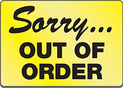 In a machine world, things break. They break and, because there are only specialized people who can fix them, they sit in said broken state, ‘out of order.’ There will be a sign, sometimes formal, sometimes hastily written by management, usually with a warning or apology – ‘caution’ or ‘sorry’… but sometimes just the obvious, ‘notice.’ Yes we do.